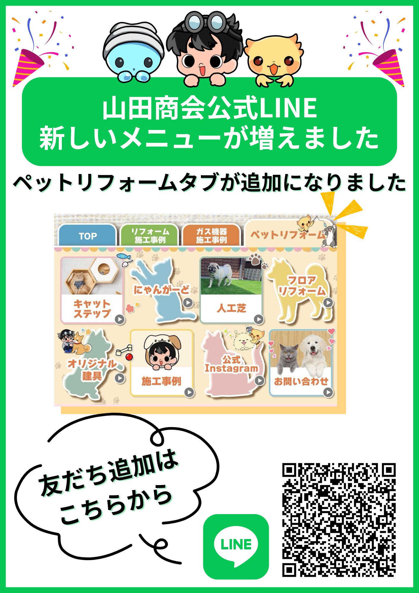 「東邦ガスくらしショップ 山田商会公式LINE」が一部リニューアルし、ペットリフォームのメニューが増えました。